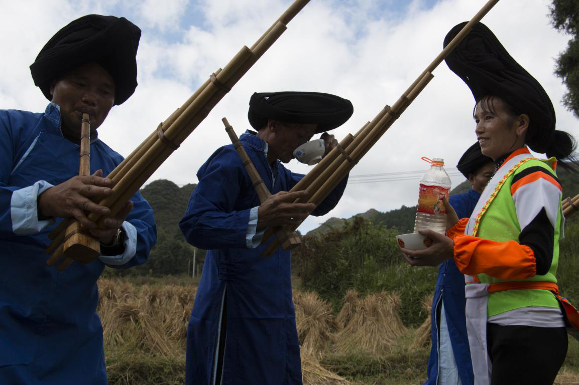 批林村蘆笙曲不限定地點,只要蘆笙響起,田間地頭,都可以起跳。蘆笙曲曲調(diào)深沉而又悠揚,配著藍(lán)天白云,稻草風(fēng)香,整體舞蹈與天地相合,令人沉浸其中。