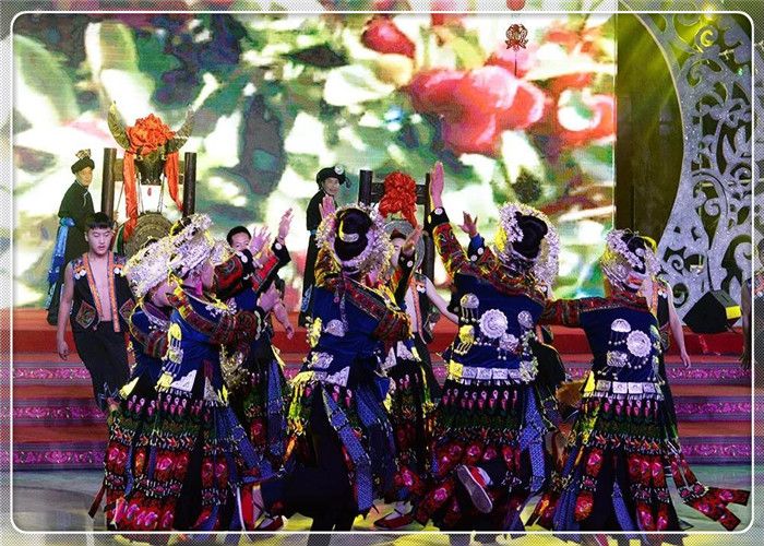 中國苗族網(wǎng)訊 2019年1月19日,由貴州省社科聯(lián)、貴州民族大學(xué)指導(dǎo),貴州省苗學(xué)會主辦,貴陽市苗學(xué)會、六盤水市苗學(xué)會、安順市苗學(xué)會、畢節(jié)市苗學(xué)會、銅仁市苗學(xué)會、黔西南州苗學(xué)會、黔東南州苗學(xué)會、黔南州苗學(xué)會、貴安新區(qū)苗學(xué)會、多彩貴州城建設(shè)經(jīng)營有限公司共同協(xié)辦的“迎新春-蝶韻楓彩鼓聲來”2019春節(jié)聯(lián)歡晚會,在貴州省貴陽市“多彩貴州城”展示中心隆重舉辦。貴州省9個州市及貴安新區(qū)苗族、布依族、侗族、土家族、彝族、仡佬族、水族、回族、白族、瑤族、壯族、毛南族、蒙古族、仫佬族、羌族、滿族等17個少數(shù)民族載歌載舞歌盛世,歡天喜地迎新春。 應(yīng)邀出席春晚的領(lǐng)導(dǎo)嘉賓有貴州省人大常委會原副主任、省苗學(xué)會老會長楊光林,以及貴州省人大常委會,貴州省社科聯(lián),貴州省民政廳,貴州省政協(xié),貴州民大,貴州省政協(xié),貴州省文化和旅游廳,貴州省總工會,貴州省文聯(lián)、貴州省人大、省委宣傳部、省民政廳,民宗委,社科聯(lián),貴州省八大民族學(xué)會的相關(guān)領(lǐng)導(dǎo)等應(yīng)邀出席并觀看演出。 春晚得到了貴州省委宣傳部領(lǐng)導(dǎo)關(guān)心,省委常委、省委宣傳部慕德貴部長對晚會專門作出重要批示,要求把春晚打造成一臺“思想性、藝術(shù)性、觀賞性統(tǒng)一的文藝晚會,豐富春節(jié)期間群眾性精神文化生活,營造歡樂、喜慶、團結(jié)、祥和的節(jié)日氛圍”。 晚會緊扣“同心共筑中國夢,中華民族一家親”主題,圍繞共同團結(jié)奮斗、共同繁榮發(fā)展主題,繼承和弘揚中華民族優(yōu)秀傳統(tǒng)文化,積極展示貴州少數(shù)民族同胞改革開放40周年來翻天覆地的新變化,用少數(shù)民族原生態(tài)歌舞形式歌頌黨、歌頌祖國、歌頌民族大團結(jié)。春晚節(jié)目,由貴州省各州市國家非遺保護節(jié)目、在中央春晚節(jié)目,由貴州省各州市國家非遺保護節(jié)目、在中央級、省市級比賽中獲獎的各民族原生態(tài)蘆笙舞、錦雞舞、銅鼓舞、板凳舞,苗族飛歌、古歌、大歌、情歌、絕技;民族盛裝走秀;非遺文化展示等26個節(jié)目組成。 晚會由240位貴州各地苗族演員,50位苗族、布依族、侗族、仡佬族、彝族、土家族、回族等17個少數(shù)民族演員,在主持人的開場白介紹中,手持燈花、衣著盛裝在鼓點笙曲中步入會場。 接著,被國內(nèi)外譽為“東方迪斯科”的黔東南州臺江《反排木鼓舞》拉開笙鼓迎春的序幕,雷山國家級非遺節(jié)目《掌坳銅鼓舞》、《錦雞舞》,貴陽市花溪區(qū)《花鼓舞》、貴安新區(qū)原生態(tài)蘆笙舞《花坡韻》、黔南州《鼓龍鼓虎-長衫龍》、兒童舞蹈《跺月亮》、畢節(jié)市納雍縣蘆笙舞《滾山珠》、凱里原生態(tài)合唱《春之歌》、安順留守兒童合唱團《又見桃花開》、金竹樂隊蘆笙組合《酒歌》、銅仁市絕技《紙上飛仙》、黔西南州《板凳舞》等,一個個節(jié)目精彩絕倫、美輪美奐,舞出少數(shù)民族同胞“美起來、笑起來、富起來、強起來”的精神風(fēng)貌、音容笑貌。最后,貴州省17個世居少數(shù)民族240名演員齊唱《愛我中華》,在“五十六個民族五十六朵花,五十六個兄弟姐妹是一家”的歌聲中把整臺晚會推向高潮,拉下帷幕。 此次春晚民族文化濃厚、明星歌手薈萃、演員陣容龐 此次春晚民族文化濃厚、明星歌手薈萃、演員陣容龐大、節(jié)目精彩絕倫。這些節(jié)目,涵蓋了東部方言、中部方言和西部方言各民族支系。遍及黔東南州、黔西南州、黔南州、貴陽市、安順市、畢節(jié)市、六盤水市、銅仁市和貴安新區(qū)。老藝術(shù)家榜香、青年歌手阿幼朵、潘興周、雷艷、楊一方、阿娜丹、歐桑、楊佳茜、楊祖桃、楊思雨、楊廷勇、吳敏成、阿蕾倩、余秋陽、阿依三姐妹、谷阿斯組合、阿依山娃組合等20多名少數(shù)民族歌星紛紛登臺獻藝,演員達300余人。 貴州省人大常委會原副主任、貴州省苗學(xué)會老會長楊光林說,春晚的舉辦,有利于提高民族同胞的戰(zhàn)斗力、凝聚力、感召力!春晚牢牢把握了“百姓富、生態(tài)美”兩條底線,通過晚會形式,吹響了少數(shù)民族同胞在黨中央和貴州省委、省政府的堅強領(lǐng)導(dǎo)下,致力于決戰(zhàn)脫貧攻堅,決勝同步小康、實現(xiàn)鄉(xiāng)村振興的號角。是號召大家參與國家實施的“鄉(xiāng)村振興、脫貧攻堅”任務(wù),努力實現(xiàn)貴州人民2020年和全國人民同步實現(xiàn)小康及全國人民正在努力實現(xiàn)的“中國夢”作出貢獻的動員令! 晚會當天,春晚組委會主任、貴州省苗學(xué)會常務(wù)副會長張榮斌介紹:“迎新春-蝶韻楓彩鼓聲來”2019春節(jié)聯(lián)歡晚會,是推進貴州省委、政府明確提出的“全力打造多彩貴州民族特色文化強省”戰(zhàn)略定位的實際行動;是著力推出民族民間文化精品,提升“山地公園省,多彩貴州風(fēng)”影響力和美譽度的良好平臺;是增強少數(shù)民族同胞文化自信,打造“山地公園省,多彩貴州風(fēng)”的靚麗名片和文化品牌;是全省少數(shù)民族同胞新春佳節(jié)的一場文化盛宴。 參加春晚的演員百分之九十來至農(nóng)村,很多來自邊遠山區(qū)。大家認為,春晚要年年辦,希望黨委