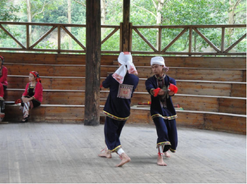必背口瑤族新村村民跳著瑤族舞蹈(王鐵志攝)