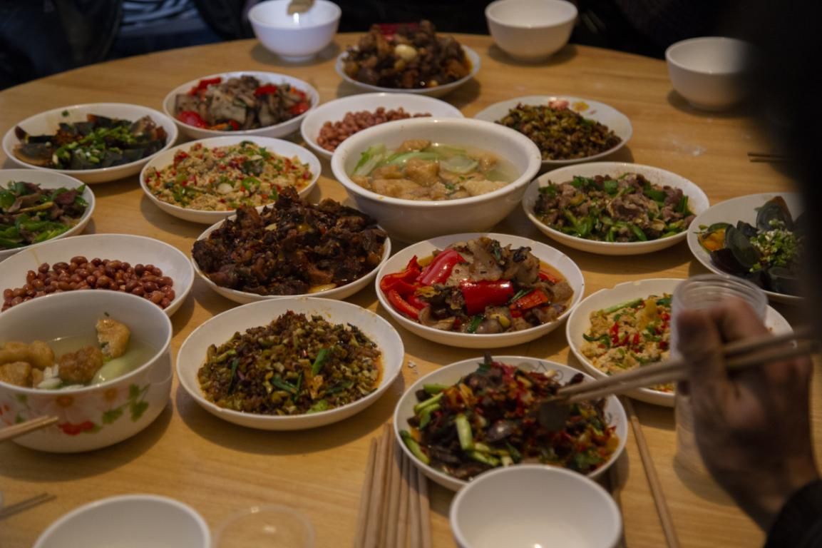 敬灶始,先在堂后做法事后,再端起文書到灶房灶頭做法事,文書燒在灶中。領牲法事有的戴面具,有的不戴面具。領牲都極具戲劇形態(tài),其中有角色對白,邊唱邊舞,壇場打諢,語言幽默,觀眾喜愛。一般都把洗凈的豬抬進中堂,用司刀把豬尾巴割掉,掏出豬腰,請出殺豬匠來說一些奉承言語,燒紙,敬酒。領牲的程序,首先去豬頭,后把三絲肉、合同肉;扎案肉;豬尾巴;豬腰子,頭、蹄腳用來敬菩薩,五心肝肚也要拿來敬菩薩。