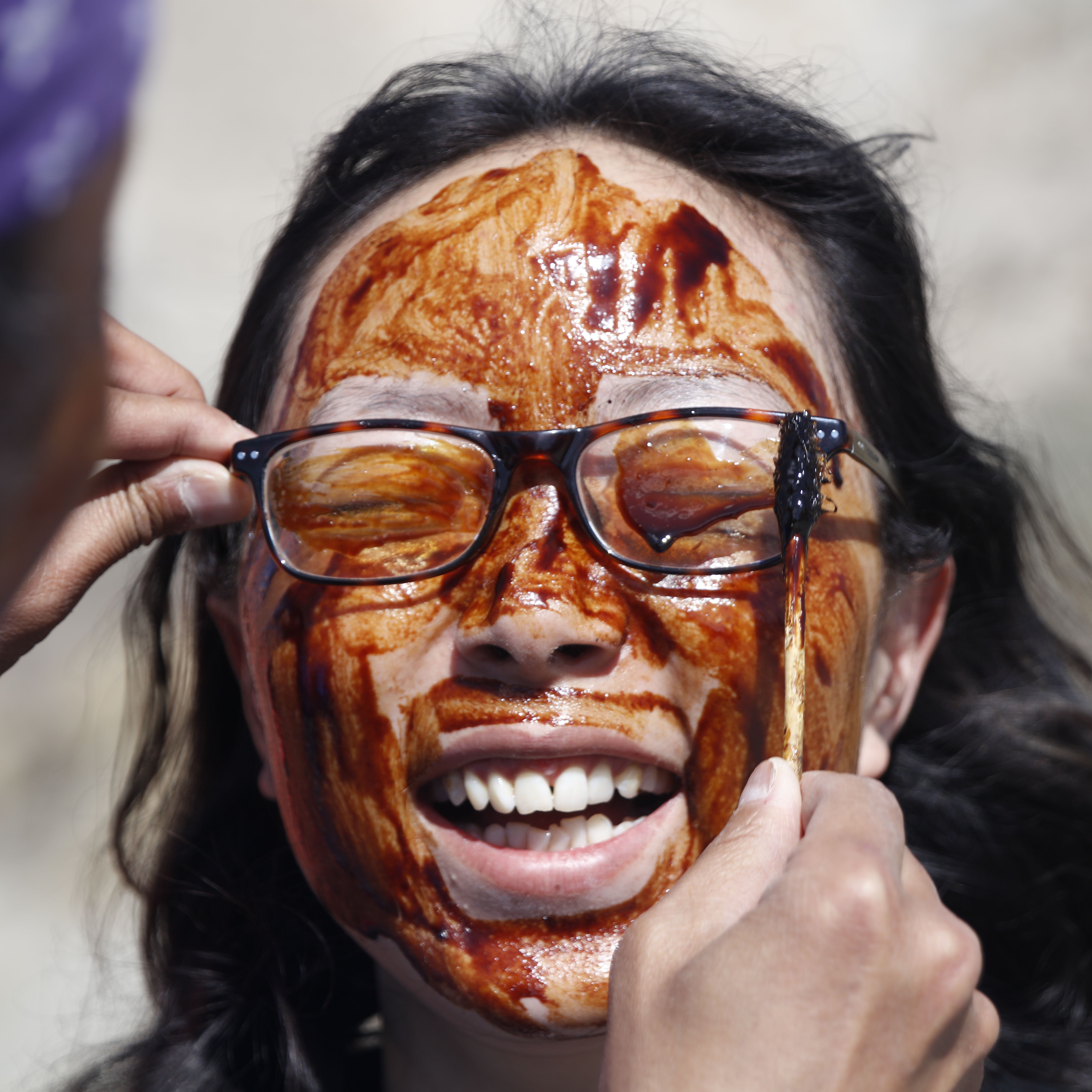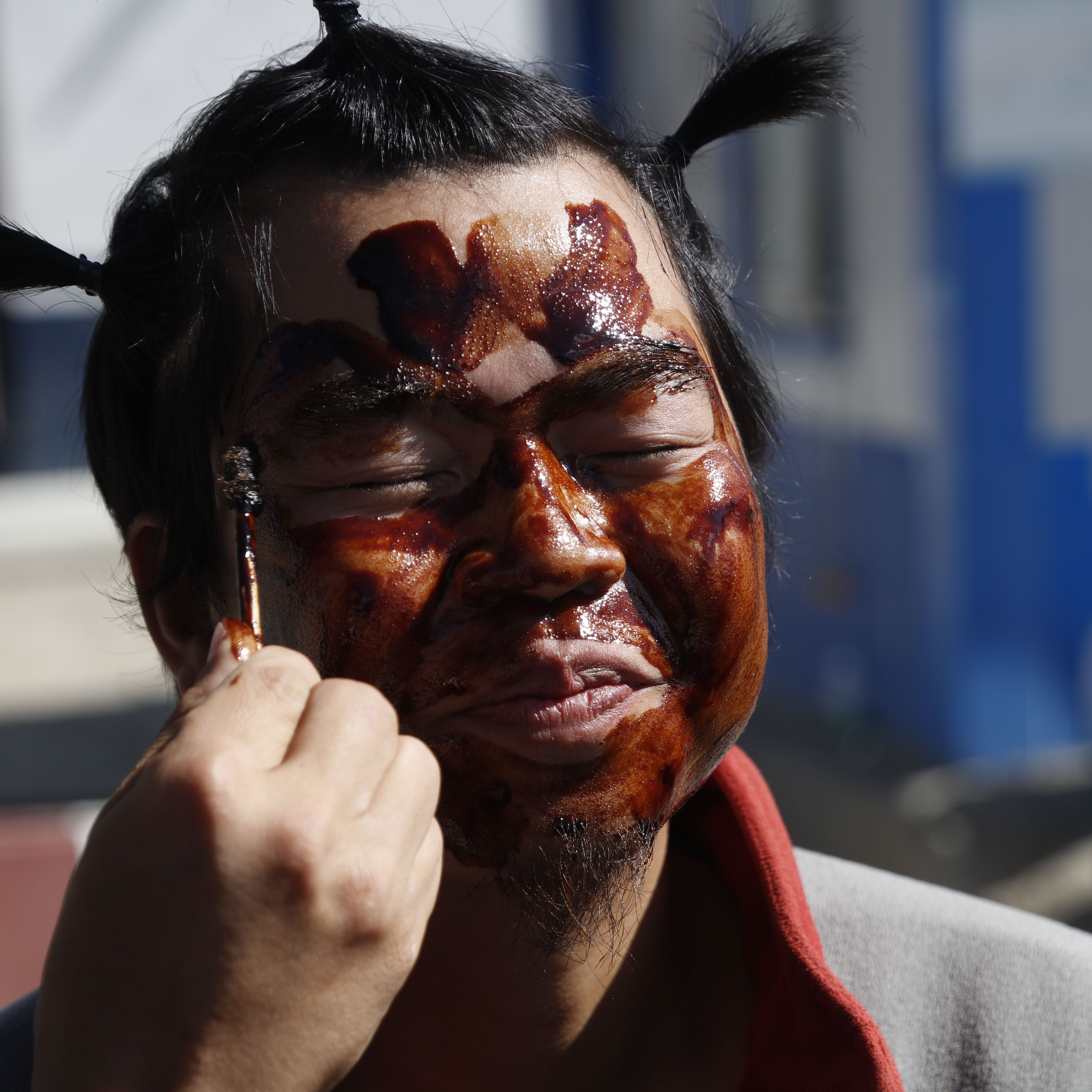 老奶奶把札達(dá)面膜抹在客人臉上