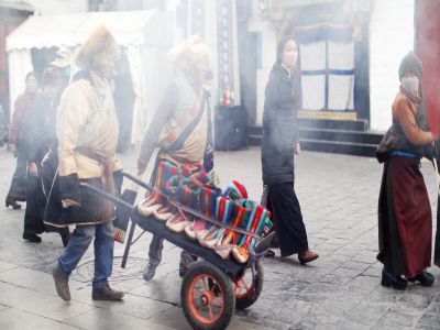 在拉薩賣(mài)傳統(tǒng)牧靴